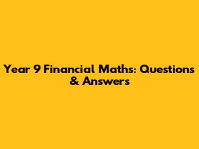 Year 9 Financial Maths: Questions & Answers