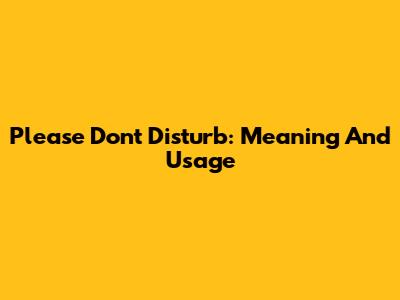 Please Don't Disturb: Meaning And Usage