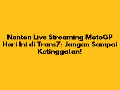 Live streaming MotoGP hari ini di Trans7 adalah cara terbaik untuk menyaksikan balapan motor paling bergengsi di dunia. Bagi kalian para penggemar balap motor, tentu saja tidak ingin melewatkan setiap detiknya, mulai dari sesi latihan bebas, kualifikasi, hingga balapan utama. Kabar baiknya, Trans7 secara konsisten menyiarkan MotoGP secara langsung, memberikan akses mudah bagi kita semua untuk menikmati aksi para pembalap terbaik dunia. Jadi, bagaimana cara nonton live streaming MotoGP hari ini di Trans7? Mari kita bahas secara tuntas!