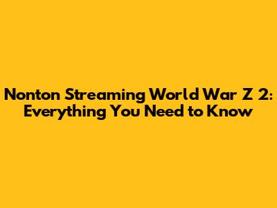 Where to Watch World War Z 2 Streaming: The Possibilities
