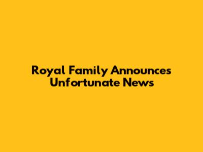 Royal Family Announces Unfortunate News