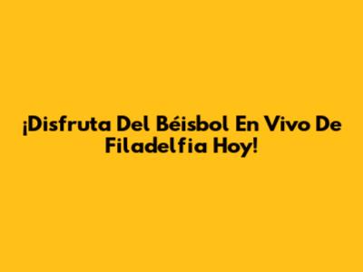 ¡Disfruta Del Béisbol En Vivo De Filadelfia Hoy!
