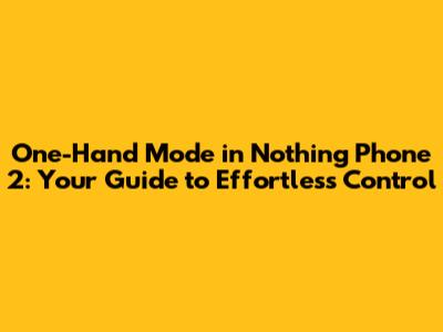 Hey guys! Let's dive into something super useful for all you Nothing Phone 2 users out there: one-hand mode. In today's world, where phone screens keep getting bigger, navigating your device with just one hand can feel like a real challenge. Luckily, the Nothing Phone 2 has a built-in feature to make life easier. This article will walk you through everything you need to know about using one-hand mode on your Nothing Phone 2, from enabling it to customizing it for your specific needs. Get ready to reclaim control and enjoy a more comfortable user experience!