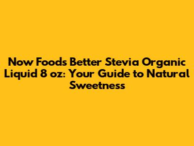 Hey guys! Are you looking for a natural, healthy, and delicious way to sweeten your favorite beverages and foods? Look no further! In this article, we're diving deep into Now Foods Better Stevia Organic Liquid 8 oz, exploring its benefits, how to use it, and why it might just be the perfect sweetener for you. We'll cover everything you need to know to make an informed decision and sweeten your life the natural way.