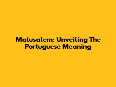 Matusalem: Unveiling The Portuguese Meaning
