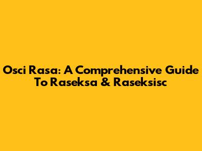 Osci Rasa: A Comprehensive Guide To Raseksa & Raseksisc