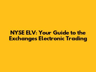 NYSE ELV: Your Guide To The Exchange's Electronic Trading