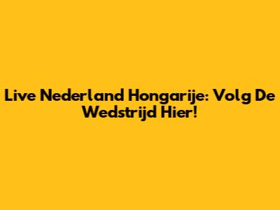Live Nederland Hongarije: Volg De Wedstrijd Hier!
