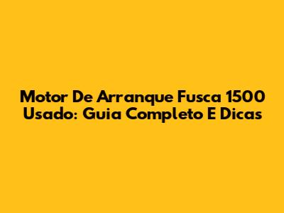 Motor De Arranque Fusca 1500 Usado: Guia Completo E Dicas