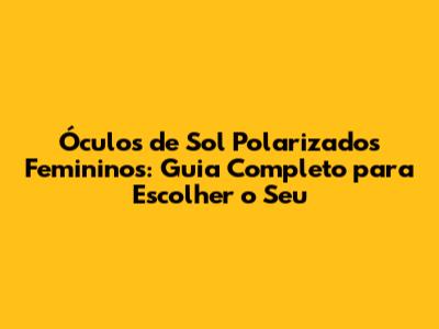 Como Escolher o Óculos de Sol Polarizado Feminino Perfeito?