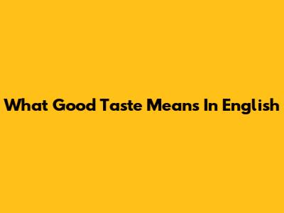 What 'Good Taste' Means In English