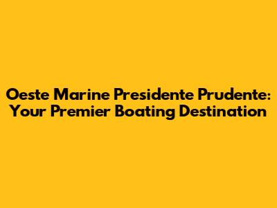 Hey guys! Ever dreamed of cruising the open water, feeling the sun on your face, and the wind in your hair? Well, if you're in or around Presidente Prudente, São Paulo, you're in luck! Oeste Marine Presidente Prudente is your go-to spot for all things boating. Whether you're a seasoned sailor or a complete newbie, they've got something for everyone. Let's dive into what makes Oeste Marine the best choice for your aquatic adventures.