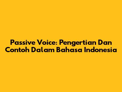 Passive Voice: Pengertian Dan Contoh Dalam Bahasa Indonesia
