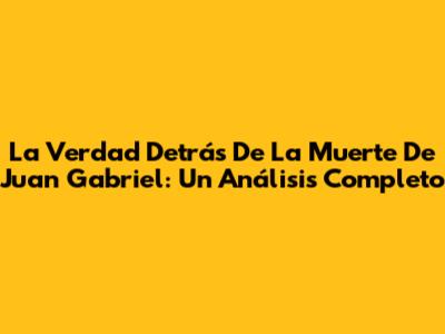 La Verdad Detrás De La Muerte De Juan Gabriel: Un Análisis Completo