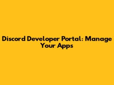Discord Developer Portal: Manage Your Apps