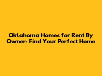 Finding the perfect Oklahoma home for rent by owner requires careful consideration and effort. By understanding the advantages and challenges, conducting thorough research, and exercising due diligence, you can increase your chances of finding a great rental and building a positive relationship with your landlord. Remember, the key is to be informed, proactive, and communicative throughout the entire process.