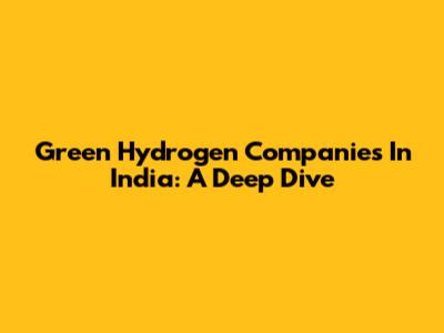 Green Hydrogen Companies In India: A Deep Dive