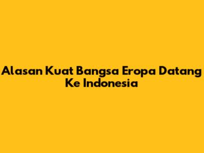 Alasan Kuat Bangsa Eropa Datang Ke Indonesia