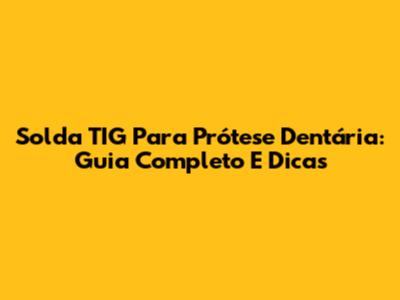 Solda TIG Para Prótese Dentária: Guia Completo E Dicas