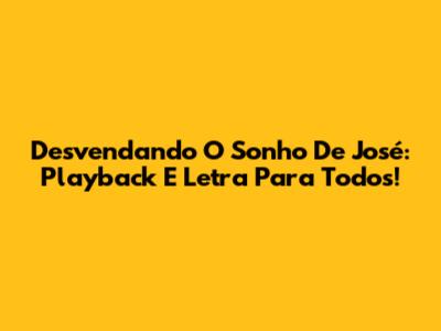 Desvendando 'O Sonho De José': Playback E Letra Para Todos!