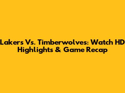 Lakers Vs. Timberwolves: Watch HD Highlights & Game Recap