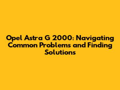 Troubleshooting Tips for Your Opel Astra G 2000