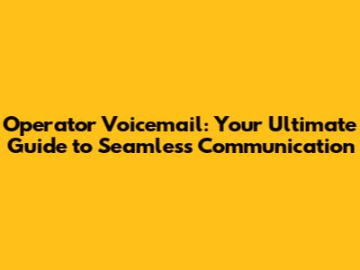 What is Operator Voicemail? Understanding the Basics