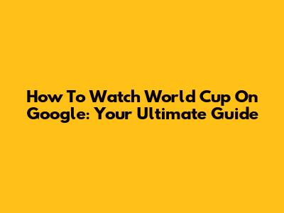 How To Watch World Cup On Google: Your Ultimate Guide