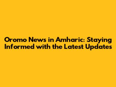 Oromo News in Amharic: Staying Informed with the Latest Updates