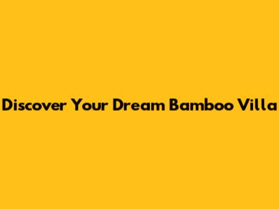Discover Your Dream Bamboo Villa