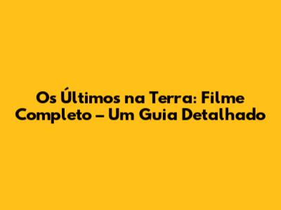 Para encontrar o filme completo, você tem algumas opções. Primeiramente, verifique as plataformas de streaming mais populares, como Netflix, Amazon Prime Video e Hulu. Muitas vezes, filmes como Os Últimos na Terra estão disponíveis nesses serviços por um período limitado. Outra alternativa é alugar ou comprar o filme em plataformas como Google Play Filmes, Apple TV ou Microsoft Store. Esses serviços oferecem uma forma legal e acessível de assistir ao filme no conforto da sua casa. Além disso, fique de olho em promoções e ofertas especiais que podem surgir nessas plataformas. Algumas vezes, é possível encontrar descontos ou pacotes que incluem Os Últimos na Terra e outros filmes similares. Outra opção é verificar se o filme está disponível em DVD ou Blu-ray em lojas físicas ou online. Embora o streaming seja a forma mais comum de assistir filmes hoje em dia, muitas pessoas ainda preferem ter uma cópia física do filme para colecionar ou assistir quando não têm acesso à internet. Além disso, você pode procurar por exibições do filme em festivais de cinema ou mostras especiais. Essas exibições podem ser uma oportunidade única de assistir Os Últimos na Terra em uma tela grande e com uma plateia de fãs. Por fim, fique atento às redes sociais e fóruns de discussão sobre cinema. Muitas vezes, os fãs compartilham informações sobre onde encontrar o filme completo ou dicas de como assistir online. No entanto, é importante ter cuidado com sites que oferecem o filme de forma ilegal, pois eles podem conter vírus ou malware. Sempre opte por fontes seguras e confiáveis para proteger seus dispositivos e sua privacidade. Ao seguir essas dicas, você certamente encontrará Os Últimos na Terra completo e poderá desfrutar dessa experiência cinematográfica.