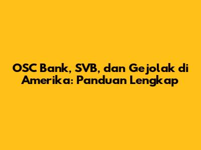 - Apa perbedaan antara OSC Bank dan SVB? OSC Bank adalah entitas keuangan yang berbeda dari SVB. OSC Bank mungkin memiliki fokus bisnis yang berbeda, strategi yang berbeda, dan manajemen risiko yang berbeda.