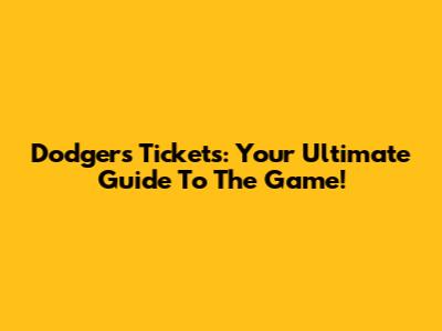 Dodgers Tickets: Your Ultimate Guide To The Game!