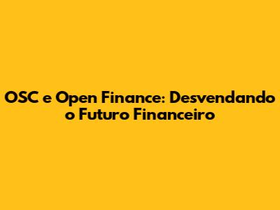 - Como o OSC se relaciona com o Open Finance? O OSC se relaciona com o Open Finance de diversas maneiras. O Open Finance fornece informações para o OSC, que, por sua vez, garante a segurança e a estabilidade do sistema. Juntos, eles criam um ambiente financeiro mais transparente, competitivo e seguro.