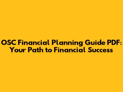 Key Components of the OSC Financial Planning Format PDF