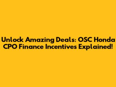 Unlock Amazing Deals: OSC Honda CPO Finance Incentives Explained!