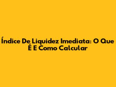 Índice De Liquidez Imediata: O Que É E Como Calcular