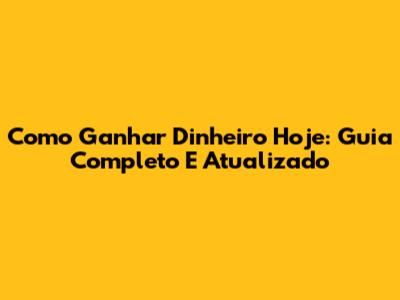 Como Ganhar Dinheiro Hoje: Guia Completo E Atualizado