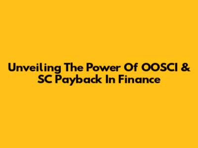 Unveiling The Power Of OOSCI & SC Payback In Finance