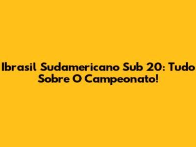 Ibrasil Sudamericano Sub 20: Tudo Sobre O Campeonato!