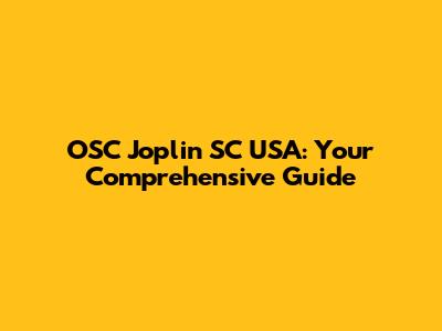 Hey guys! Ever heard of OSC Joplin SC USA and wondered what it's all about? Well, you've come to the right place. This guide will break down everything you need to know in a friendly, easy-to-understand way. We'll cover the basics, dig into the details, and answer all your burning questions. So, buckle up and let's dive in!
