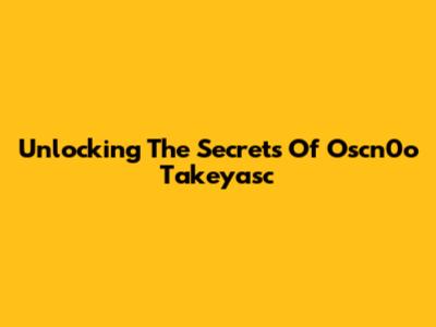 Unlocking The Secrets Of Oscn0o Takeyasc
