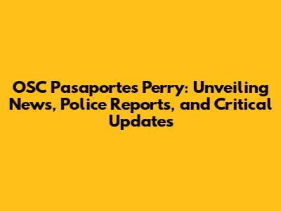Decoding the Headlines: What's New with OSC Pasaportes Perry