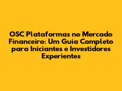 Olá, pessoal! Se você está começando a se aventurar no mundo dos investimentos ou já é um investidor experiente, provavelmente já ouviu falar das OSC Plataformas no mercado financeiro. Mas, afinal, o que são essas plataformas e como elas funcionam? Neste guia completo, vamos desmistificar o universo das OSC plataformas, explorando seus benefícios, como escolher a plataforma ideal e as melhores práticas para maximizar seus investimentos. Prepare-se para uma jornada informativa e repleta de dicas valiosas!