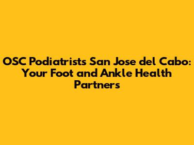 Hey guys! If you're in San Jose del Cabo and dealing with foot or ankle issues, you're probably searching for top-notch care. That's where OSC Podiatrists come in! We're diving deep into what makes these specialists your go-to for all things foot-related, covering everything from routine check-ups to complex surgical procedures. Get ready to learn about their expertise, the conditions they treat, and why choosing the right podiatrist is crucial for keeping you on your feet, literally! Let's get started on understanding why OSC Podiatrists in San Jose del Cabo are the best choice for you. Let's delve into the world of foot and ankle health with OSC Podiatrists!