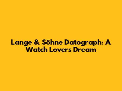 Lange & Söhne Datograph: A Watch Lover's Dream