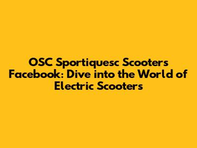 Hey scooter enthusiasts! Ready to zoom into the digital world of OSC Sportiquesc scooters? If you're a proud owner of an OSC Sportiquesc scooter or just curious about these awesome rides, then you're in the right place. We're diving deep into the OSC Sportiquesc Scooters Facebook scene, exploring everything from community groups and repair tips to the latest product updates and where to find the best deals. Get ready to connect with fellow riders, share your experiences, and stay in the loop on all things electric scooters. Let's roll!