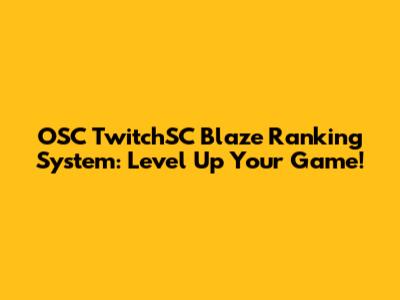 Unveiling the OSC TwitchSC Blaze Ranking System: What's the Deal?