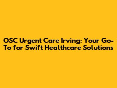 Hey everyone! Navigating the healthcare landscape can sometimes feel like a maze, right? Especially when you're dealing with an unexpected illness or injury. That's where OSC Urgent Care Irving steps in, offering a convenient and efficient solution for those times when you need prompt medical attention. This comprehensive guide will walk you through everything you need to know about OSC Urgent Care in Irving, TX. We'll cover what services they provide, what to expect during your visit, and why they might be the right choice for your healthcare needs. So, let's dive in and explore how OSC Urgent Care Irving is revolutionizing the way we access healthcare!
