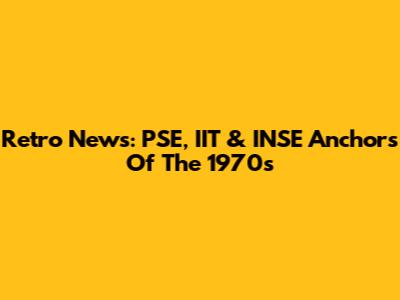 Retro News: PSE, IIT & INSE Anchors Of The 1970s